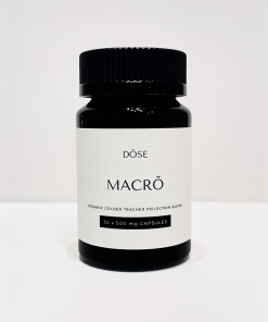 DÖSE MACRO is a versatile dose that can help you achieve the full spectrum of the psilocybin dosing experience. This blend comprises of 450mg of premium quality Organic Golden Teacher (Psilocybe cubensis) in a convenient 500mg capsule dose extracted only from the fruiting bodies of the psilocybin mushroom. In addition, 50mg of organic peppermint (mentha piperita) has been added as a soothing agent for potential digestive upsets while decreasing instances of nausea, or headaches. Each bottle contains your choice of 15 capsules (6,750mg) or 30 capsules (13,500mg) – Vegan friendly and Gluten Free.